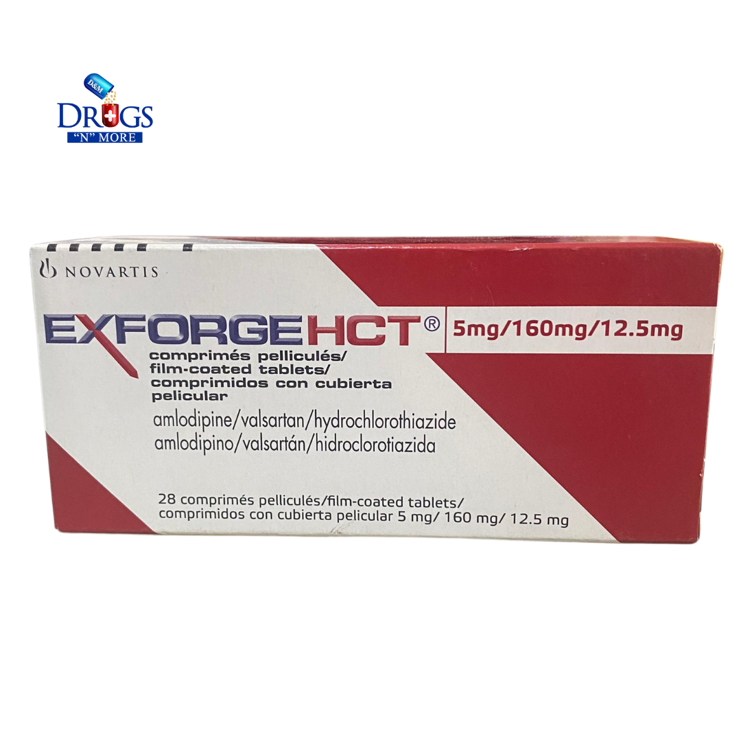 Overview: Exforge HCT 5mg/160mg/12.5mg combines amlodipine, valsartan, and hydrochlorothiazide to treat high blood pressure.